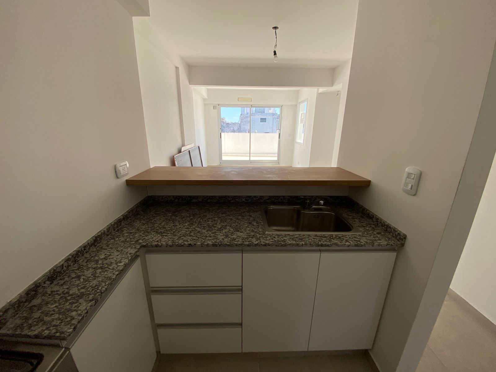 Semi piso 3 ambientes con gran balcón terraza al frente. Living, cocina integrada, balcón, Baño, 2 dormitorios.